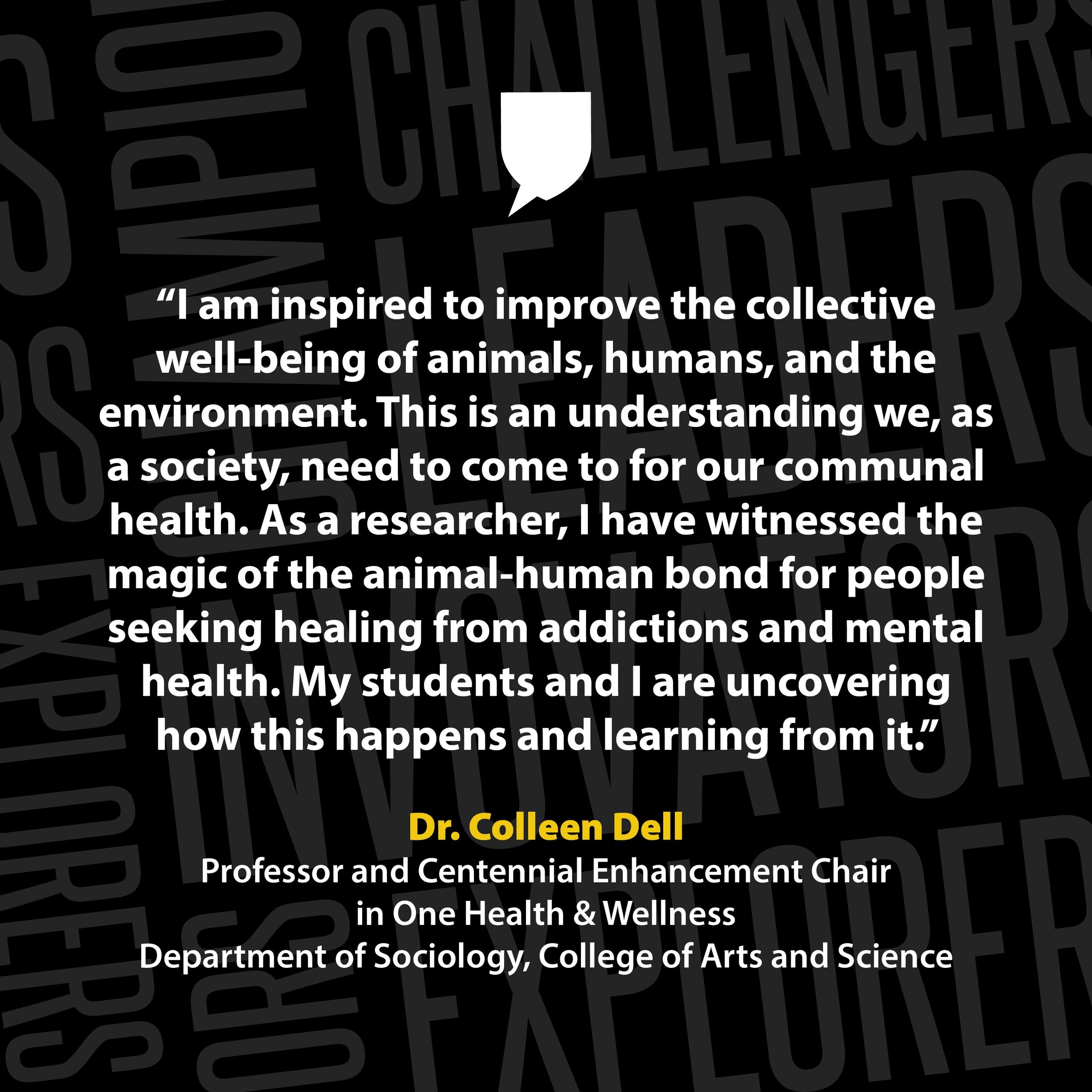 As a priority for the Campaign, critical research at USask takes on many forms to address various growing global demands. Dr. Colleen Dell is at the forefront of animal therapy research and its impact on mental health and addictions for humans.